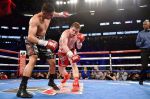 ซาอูล "คาเนโล่" อัลวาเรซ แชมป์โลกรุ่นมิิดเดิลเวตของ WBC ชาวเม็กซิกัน ต้องเจอกันกับงานหนัก เมื่อโดน อาเมียร์ ข่าน อดีตแชมป์โลกรุ่น 140 ปอนด์ของ WBA/IBF ชาวอังกฤษ ใช้ความเร็วหลอกล่อทำคะแนนนำไปก่อนใน 4 ยกแรก ก่อนที่คาเนโล่จะมาอัดลำตัวจนข่านอ่อนแรง จากนั้นจึงได้จังหวะสวนขวาเข้าเต็มๆส่งข่านไปนอนเหยียดยาว และกรรมการโบกมือยุติการชกไปในทันที ทำให้อัลวาเรซป้องกันตำแหน่งเอาไว้