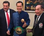 Photo Credit : Twitter @wbcmoro News Credit : เพชรยินดี บ็อกซิ่ง โปรโมชั่น ล่าสุด นายสุพจน์ วงศ์จิวานิช ประชาสัมพันธ์สภามวยแห่งเอเชีย WBC Asia ได้เปิดเผยว่า นายมัวริซิโอ สุไลมาน ได้เดินทางมาถึงประเทศไทยแล้วตั้งแต่เมื่อวันอาทิตย์ที่ 29 เมษายนที่ผ่านมา ด้วยสายการบิน คาเธ่ย์ แปซิฟิค เที่ยวบินที่ CX 755 โดยมาถึงท่าอากาศยานนานาชาติสุวรรณภูมิในเวลา 11.25 น. โดยประธานสภามวยโลกนั้ได้หอบหิ้วเข็มขัดพิเศษ "Don Adolfo López Mateos" มูลค่าร่วมครึ่งล้านมาด้วย เพื่อเตรียมมอบให้กับ ให้ วันเฮง ไก่ย่างห้าดาวยิม หากสามารถเอาชนะในการชกป้องกันแชมป์ครั้งนี้ไว้ได้ เนื่อจากการชกครั้งนี้จะเป็นการทำสถิติชนะรวด 50 ไฟต์ในการชกมวยสากลอาชีพ ซึ่งถือเป็นสถิติสูงสุดเทียบเท่ากับ ฟลอยด์ เมย์เวทเธอร์ จูเนียร์ นักชกระดับตำนานของสหรัฐอเมริกา และในวันจันทร์ที่ 30 เมษายน ประธานสภามวยโลกพร้อมด้วย พล.ต.อ.โกวิท ภักดีภูมิ ประธานสภามวยแห่งเอเชีย WBC Asia และคณะ ก็ได้เดินทางไปเข้าพบและพูดคุยกับ นายวีระศักดิ์ โควสุรัตน์ รัฐมนตรีว่าการกระทรวงการท่องเที่ยวและกีฬา เป็นกรณีพิเศษด้วย และสำหรับการชกป้องกันแชมป์โลกไฟต์ในบังคับของ วันเฮง ไก่ย่างห้าดาวยิม ในครั้งนี้นั้น โต๊ะเรตในเมืองไทยก็ได้เปิดราคาต่อรองออกมาให้ทางวันเฮงเป็นต่อผู้ท้าชิงชาวปานามาในอัตรา 2-1เนื่องจากครั้งนี้เป็นการชกในบ้าน และสถิติการชกที่ผ่านมาก็ข่มผู้ท้าชิงอย่างเห็นได้ชัด สำหรับคู่มวยในรายการมวยนัดนี้นั้น จะเปิดหัวด้วย เพชรมณี ซีพีเฟรชมาร์ท ขึ้นชิงแชมป์ OPBF Silver ในรุ่นมินิมั่มเวตที่ว่างกับ เมเลียนุส มิรินทร์ นักชกจากอินโดนีเซีย จากนั้นก็จะเป็นการป้องกันแชมป์โลกของวันเฮงกับเอสตราด้า แล้วจะตามด้วยคู่มวยอุ่นเครื่องอีก 2 คู่ ได้แก่ โอเล่ห์ดง ซีพีเฟรชมาร์ท ขึ้นอุ่นหมัดกับ ซุปเปอร์ท็อป สิงห์นำชัย และ วันชนะ ซีพีเฟรชมาร์ท พบกับ เพชรมังกร ศ.สิเศษกิจ โดยแฟนมวยมวยทั่วประเทศนั้นสามา่ารถที่จะติดตามชมการถ่ายทอดสดศึกมวยโลกในครั้งได้ทางสถานีโทรทัศน์สีกองทัพบกช่อง 7 ในระหว่างวลา 15.00-17.00