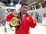 News and Photos Credit : เพชรยินดี บ็อกซิ่ง โปรโมชั่นเมื่อเวลา 02:50 น. เช้ามืดวันจันทร์ที่ 23 กรกฎาคมนี้ที่ท่าอากาศยานานาชาติสุวรรณภูมิ จังหวัดสมุทราปราการ "เจ้านูญ" น็อคเอาท์ ซีพีเฟรชมาร์ท แชมป์โลกรุ่นมินิมั่มเวตของ WBA พร้อมด้วย "เสี่ยตังค์" ปิยะรัตน์ วชิรรัตนวงศ์ โปรโมเตอร์ และทีมงาน 5 ชีวิต ได้ออกเดินทางโดยสายการบินซานตงแอร์ เที่ยวบินที่ SC4080 ไปยังเมืองชิงเต่า มณฑลซานตง ประเทศจีน โดยเวลาในการเดินทางรวม 4 ชั่วโมง 45 นาที โดยมีเป้าหมายเพื่อขึ้นชกป้องกันแชมป์โลกครั้งที่ 5 กับนักชกขวัญใจชาวจีน เสียง เฉ่า จง อดีตแชมป์โลกรุ่นเดียวกันของ WBC อันเป็นแชมป์โลกสาถบันหลักแบบมวยชายคนแรกของประเทศจีน ซึ่งการชกจะมีขึ้นในวันศุกร์ที่ 27 กรกฎาคมนี้ โดยเจ้าของเข็มขัดแชมป์โลกชายในรุ่นเล็กสุดของ WBA ได้เผยก่อนที่จะออกเดินทางว่า ตนเองไม่ได้ตื่นเต้นอะไรแม้จะเป็นการชกยังต่างแดนครั้งแรก สภาพร่างกายก็สมบูรณ์ดีพร้อมชก ในส่วนของน้ำหนักตัวนั้นยังเกินอยู่ 5.5 ปอนด์เท่านั้น ลดได้อย่างแน่นอนไม่มีปัญหา ซึ่งตนก็จะทำหน้าที่ให้ดีที่สุด และจะนำเข็มขัดแชมป์กลับมาประเทศไทยให้ได้ ส่วนทางด้านของ "เสี่ยตังค์" โปรโมเตอร์คู่ใจก็เปิดใจ ตนเชื่อว่าหากเจ้านูญไม่ตื่นเต้และคุมลสมาธิได้ดี น็อคเอาท์นั้นน่าที่จะป้องกันแชมป์ไว้ได้แน่ ในขณะที่ "โค้ชหนึ่ง"ฉัตรชัย สาสะกุล เทรนเนอร์คู่ใจก็กล่าวเช่นกันว่า ความมุ่งมั่นและความตั้งใจของน็อคเอาท์นั้น จะเป็นสิ่งที่ทำให้เขาหอบเอาเข็มขัดแชมป์กลับประเทศไทยได้แน่นอน อนึ่ง ก่อนออกเดินทางนั้นน็อคเอาท์ก็ได้รับกำลังใจอย่างเต็มเปี่ยม เพราะมี ร้อยตรีธรรมเนียม นิยมตรง และ นางสมฤดี นิยมตรง คุณพ่อกับคุณแม่ พร้อมทั้ง อาจารย์วินิจ ตั้นจัด โค้ชคนแรก ได้เดินทางมาส่งแชมป์โลกจากจังหวัดสุรินทร์รายนี้ ถึงท่าอากาศยานานาชาติสุวรรณภูมิด้วย