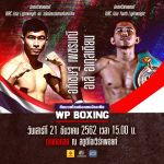แฟนมวยทุกท่านสามารถติดตามชมศึก WP Boxing ในวันเสาร์ที่ 21 ธันวาคม 2562 ตั้งแต่เวลา 15.00 น. เป็นต้นไป สามารถรับชมการถ่ายทอดสดได้ทางช่องเวิร์คพอยท์ 23 หรือ รับชมทางช่องทางออนโลน์ที่เฟซบุ๊ก Workpoint Entertainment แฟนเพจ หรือ ยูทูป WorkpointOfficial หรือชมฟรีที่ เวิร์คพอยท์ สตูดิโอ โดยสามารถรับบัตรได้หน้างานตั้งแต่เวลาบ่ายโมงตรง เป็นต้นไป และสามารถติดตามข่าวสารเพิ่มเติมได้ที่ เฟซบุ๊ก https://www.facebook.com/WPboxing23/ อินสตาแกรม @wpboxing_official และ ยูทูป WP Boxing Channel